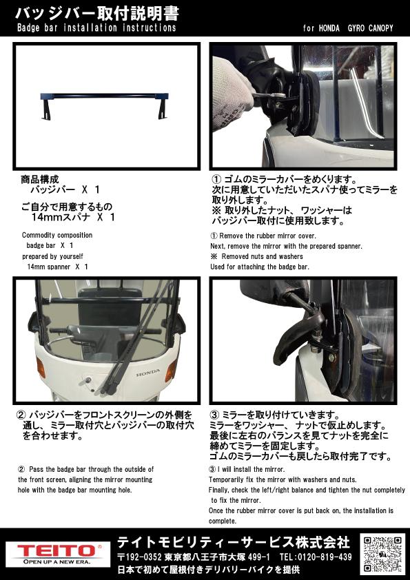 ホンダ ジャイロキャノピー用のバッジバー