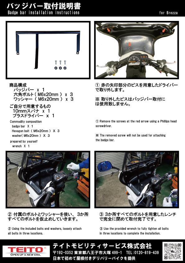 ブレッサ(ヤマハギアのルーフ付き)用のバッジバー